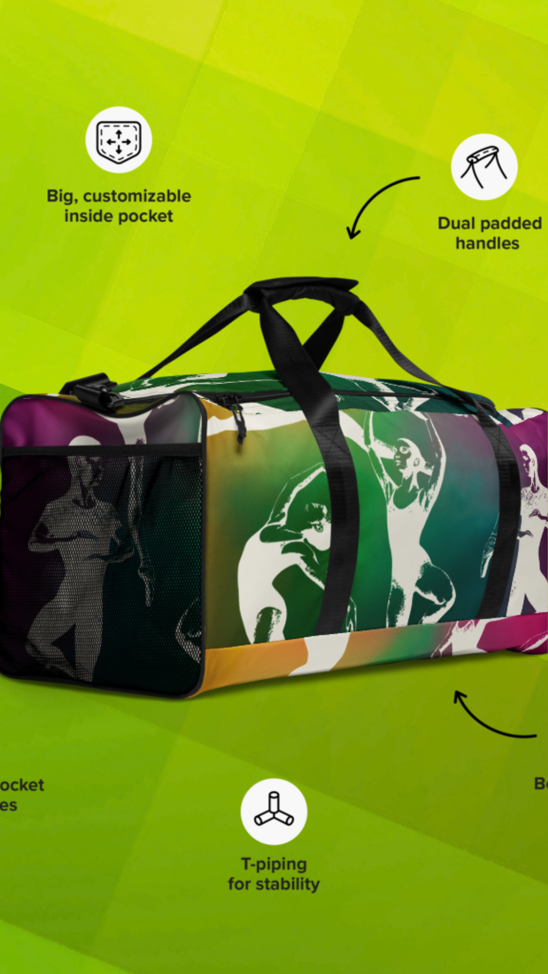 About the bag: This duffle bag is the perfect companion for every occasion—take it with you when traveling, running daily errands, or going to the gym. The bag is spacious and will keep all your stuff neat and organized with its multiple pockets, including one with a zipper for your most valuable possessions. Adjust the padded shoulder strap when the bag’s helping you carry heavier things, and continue your daily run without a worry!