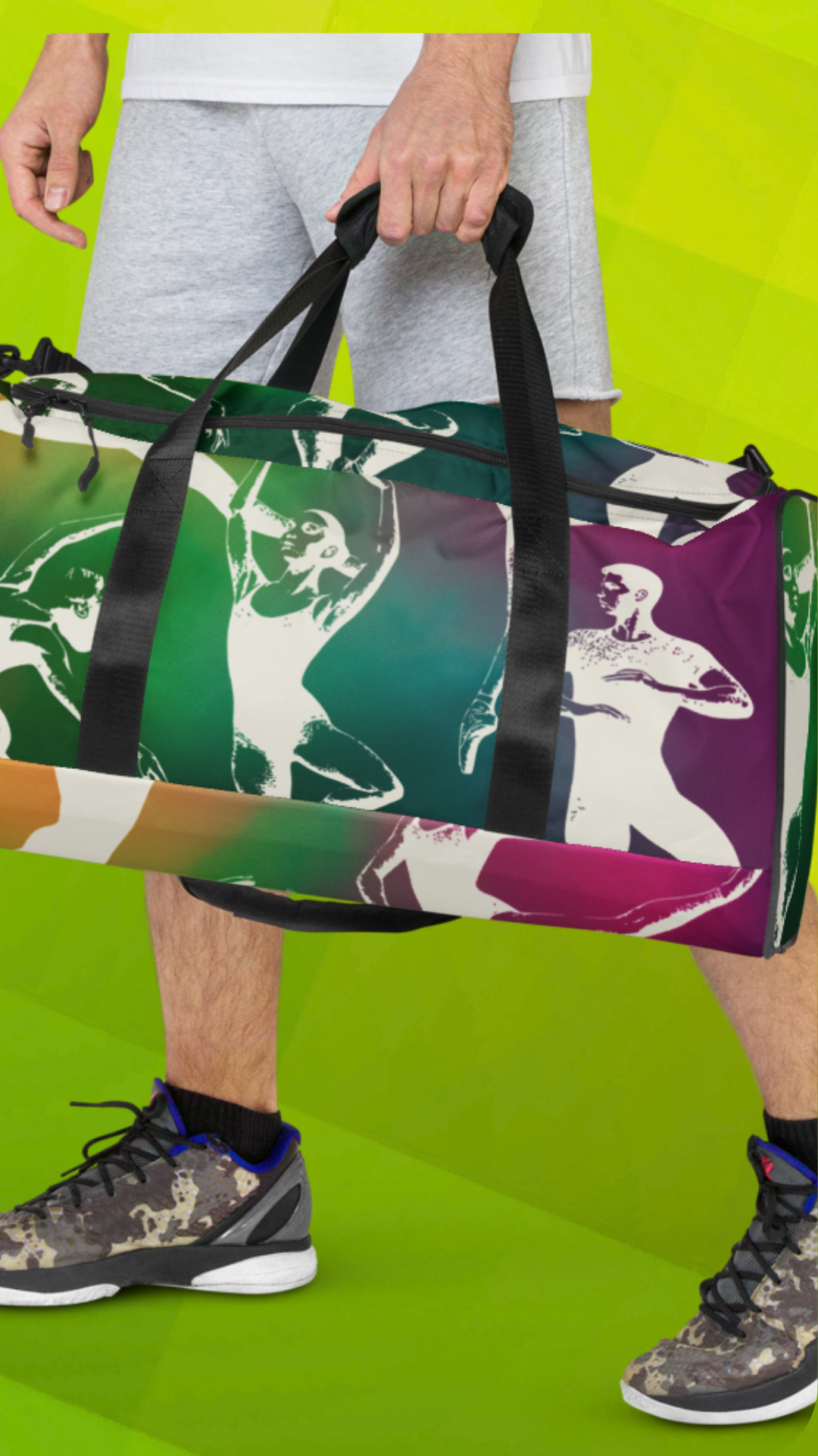 Whether you're heading to class or looking for a stylish weekender, all eyes will be on you carrying this Heart The Arts™ Technicolor Ballet Edition duffle bag in all-over print. From the leap to the pirouette, this vibrant ballet design takes center stage and is a one-of-a-kind!