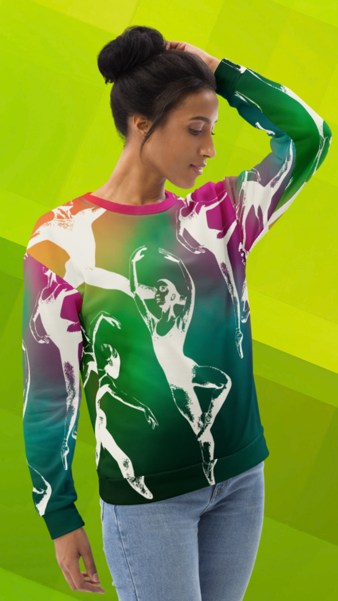 Cozy meets captivating. This bold Ballet Edition sweatshirt wraps you in comfort while putting your passion for the arts on full display. The graceful silhouettes pop against a rich Technicolor backdrop, bringing elegance, energy, and a little bit of stage magic to your everyday style. From studio warm-ups to weekend hangouts, this is how you stay on pointe—no tutu required.
